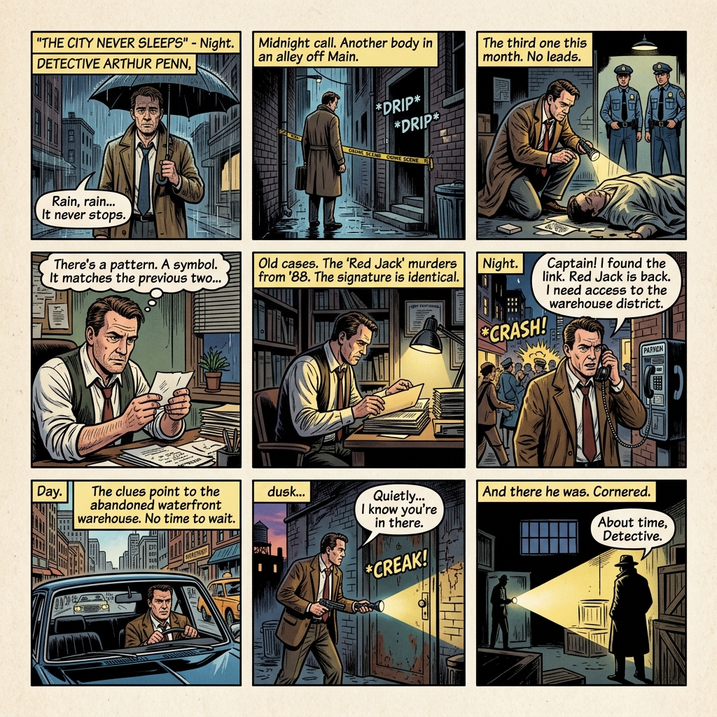 Create authentic Panel Layout Comic with grid-based panel arrangements built into every creation.