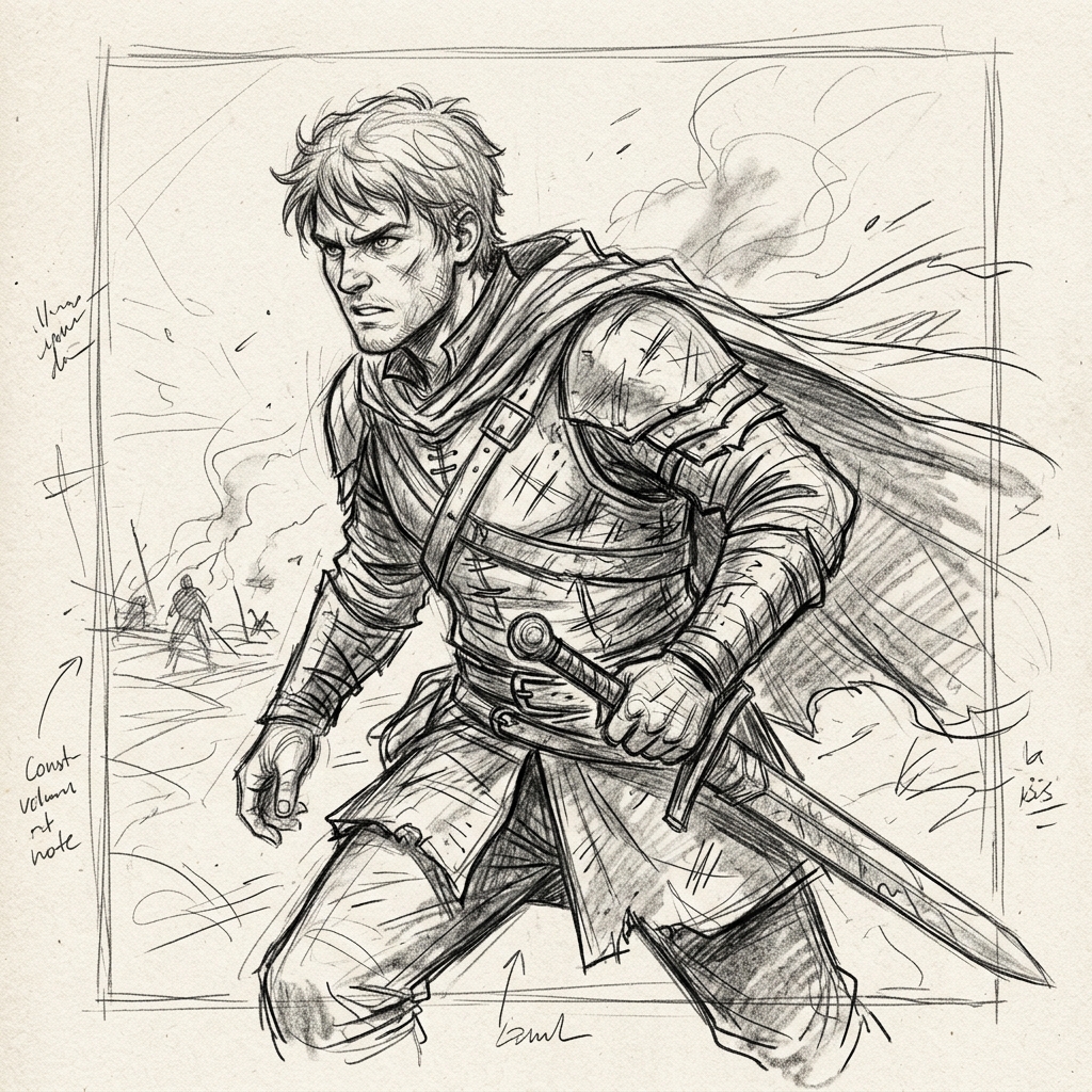 sketch comic style, character portrait, expressive quick gestures, pencil monochrome colors, high qualityDramatic Sketch Comic Style composition