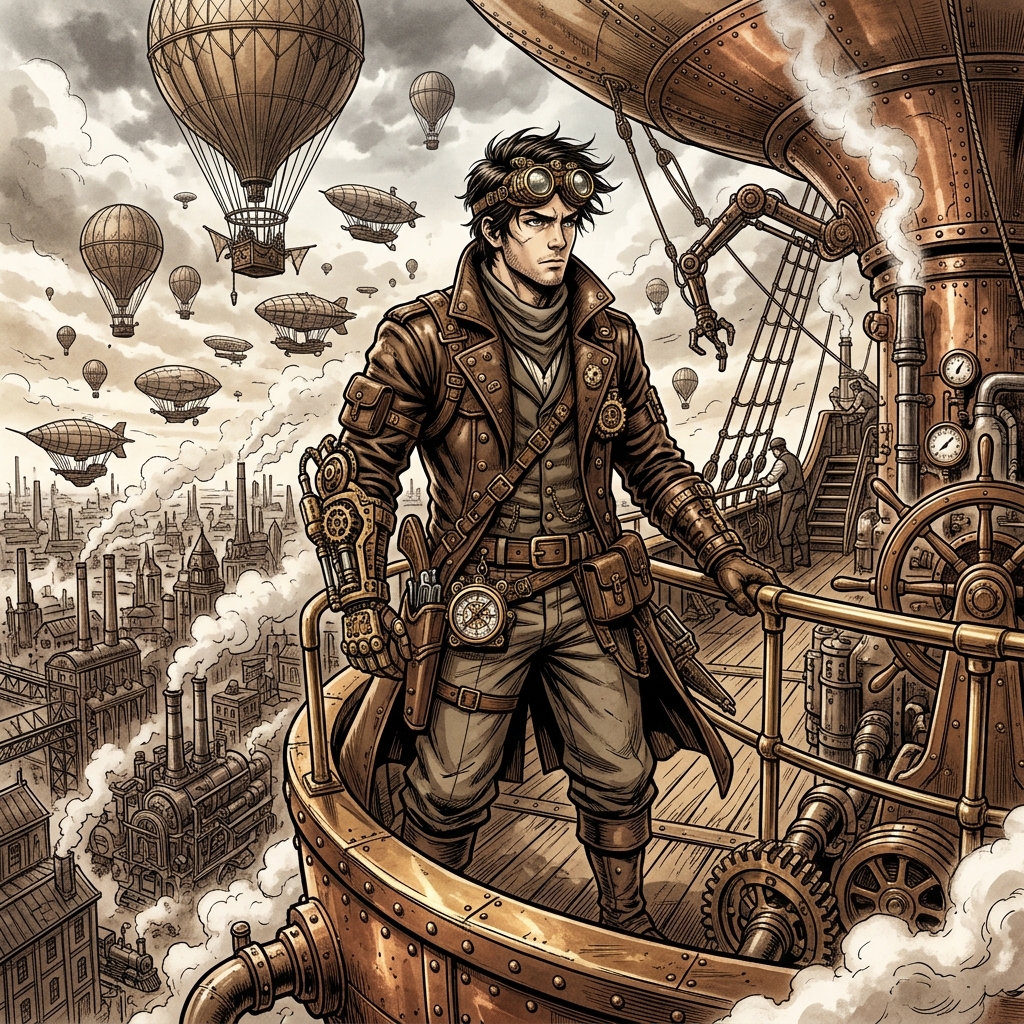 What separates Steampunk Manga Style from standard illustration is its unique mechanical approach to storytelling. Using advanced techniques like steam-powered machinery and clockwork and gear elements, alongside striking brass sepia coloring, it guides the reader's eye seamlessly across the page. It's an aesthetic that demands attention and pulls audiences directly into the narrative.